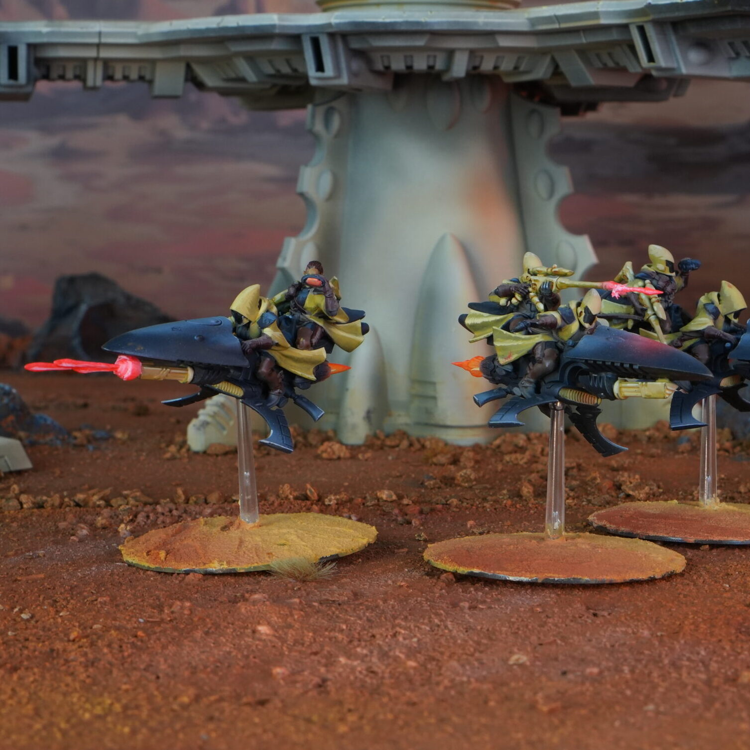 Bring the elusive Shroud Runners to life with our custom 3D-printed effects, designed to capture their stealthy yet deadly nature. Featuring rifle and bike muzzle flash effects, as well as dynamic thruster enhancements, our designs add explosive realism and fluid motion to these swift Aeldari warriors. Perfect for highlighting their deadly precision and rapid maneuvers…