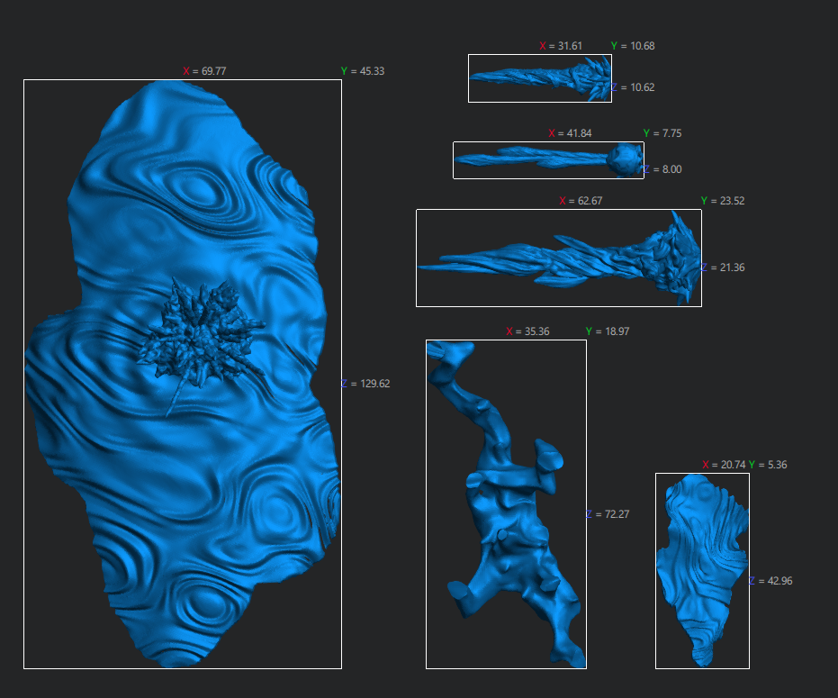 The resin has a flexible, rubber-like feel, similar to an elastic band, and is particularly bendable in smaller, more delicate parts. Larger pieces with more surface area may have a slightly tacky texture.