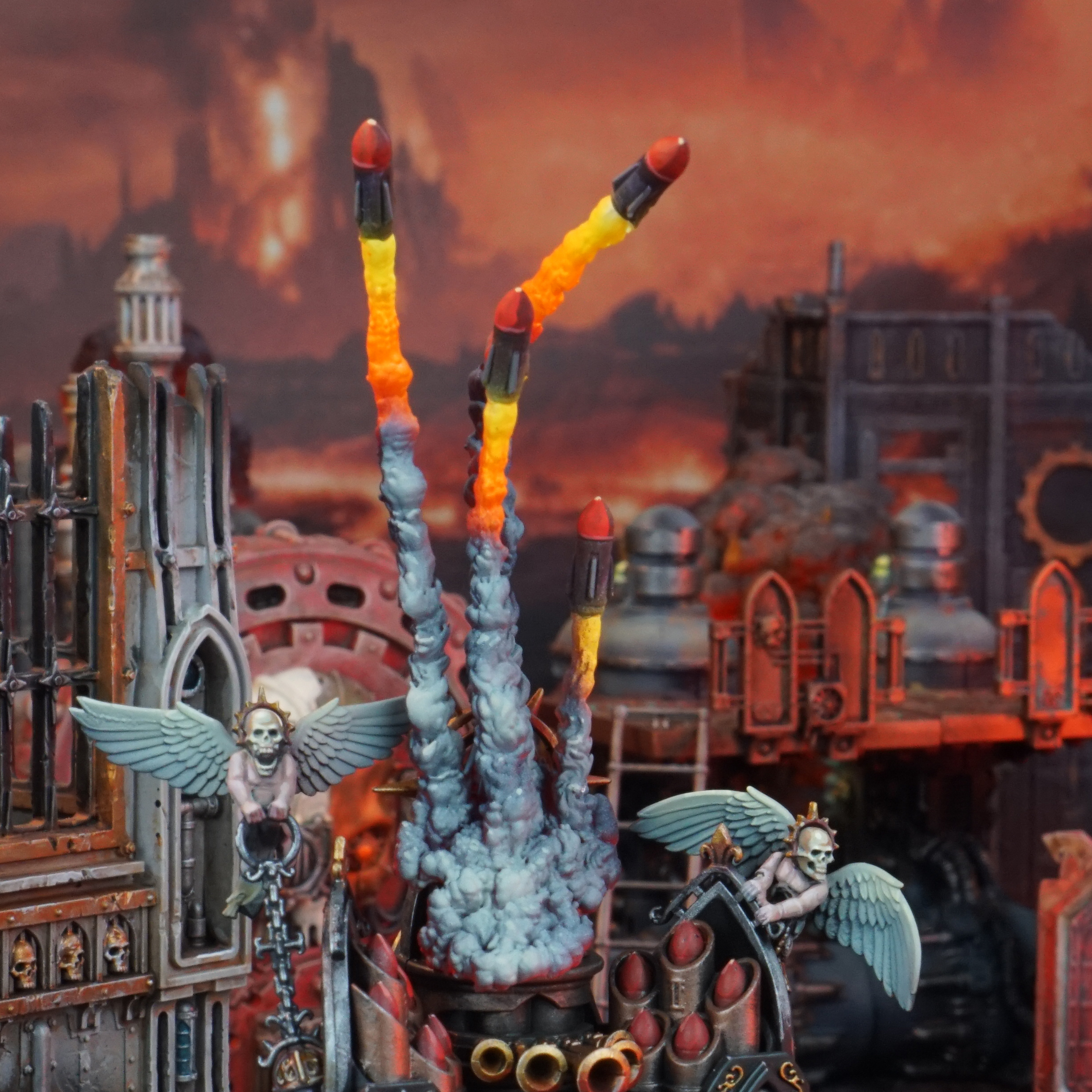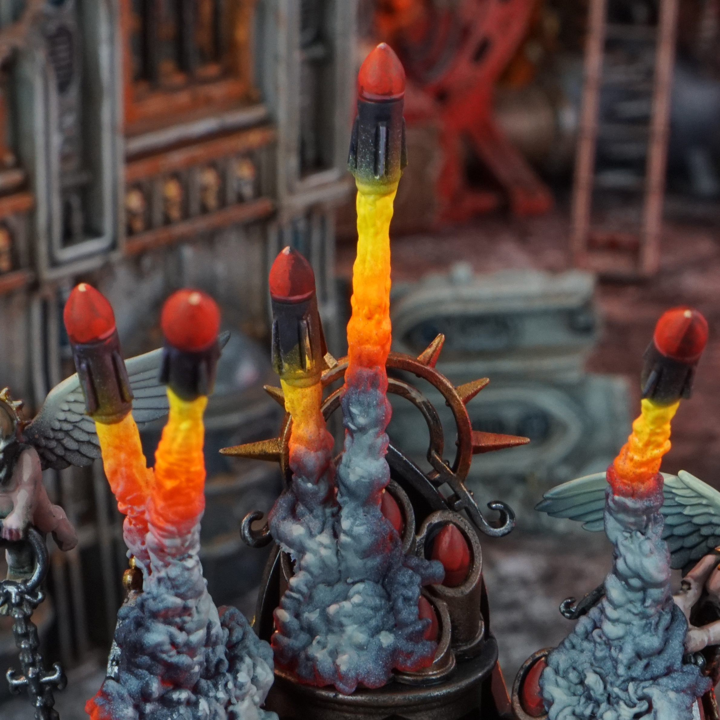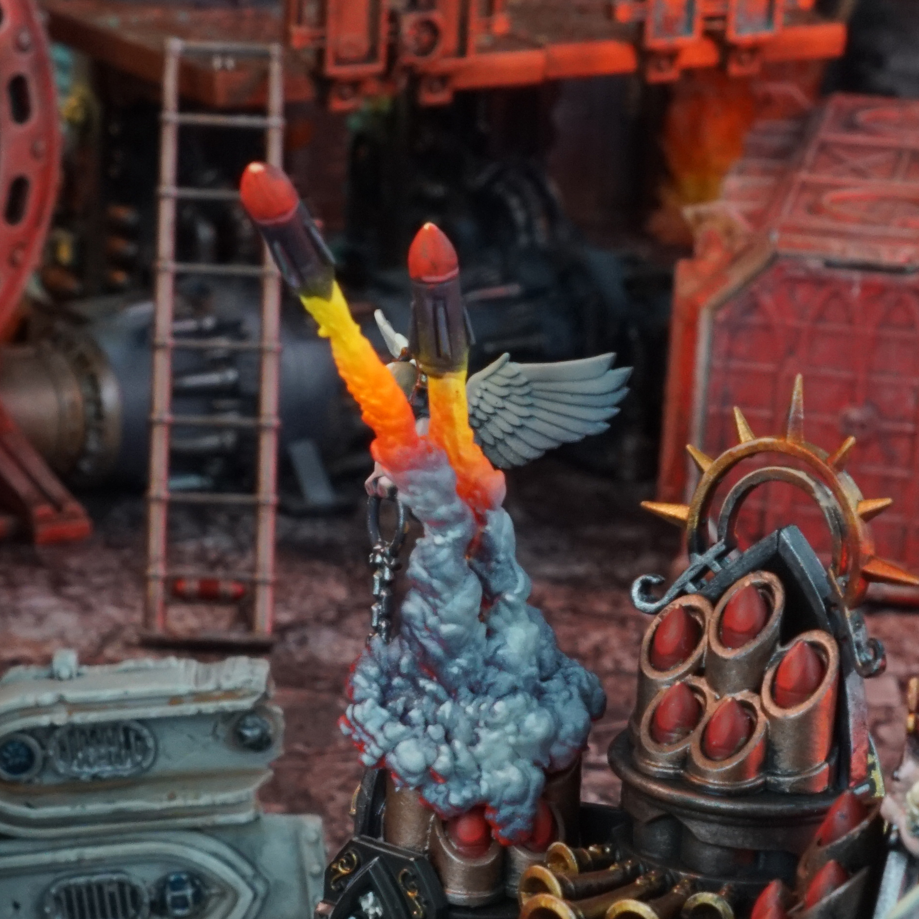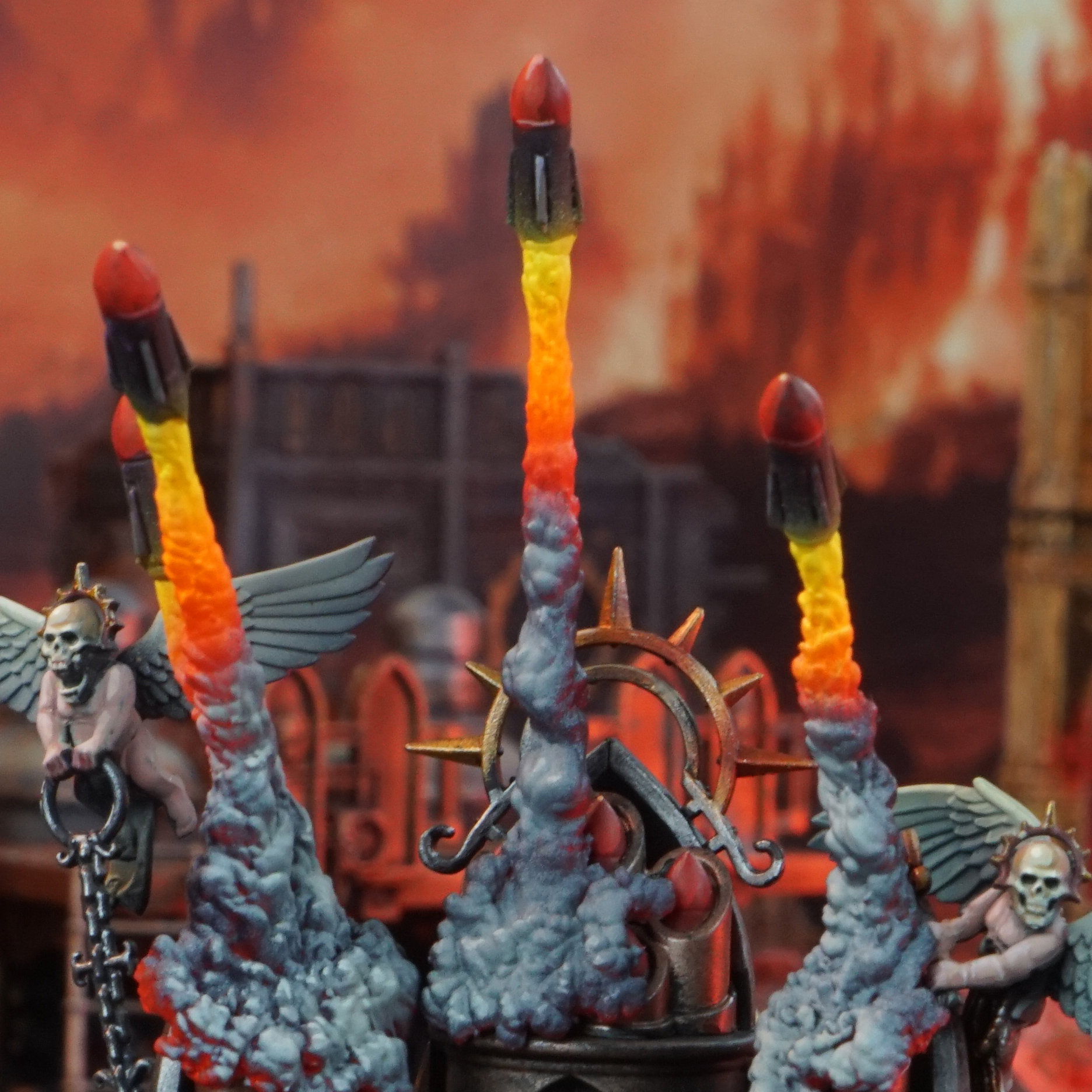 Upgrade your Adepta Sororitas Exorcist with a dynamic set of FX designed for both missile types. This bundle features detailed exhaust plumes and smoke trails that bring each launch and impact to life, capturing the full drama of battle.