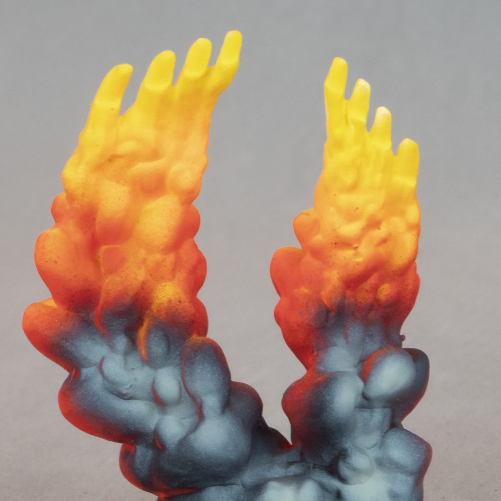 Following advice from 3d FX expert modeler and painter Juan Pedro Campuzano, we have developed a method which involves ten colour tones. We’re bringing you high contrast and vibrating fires. BE CAREFUL, IT BURNS!