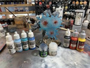 Now, explosions are balls of fire and smoke, and fire can be any color. We have created 4 examples with our 3D program to show you different color choices – the FX adapts to your army! Hopefully these examples can help you with the painting process and give to you a few references. our choice of color for this example will be red-ish.