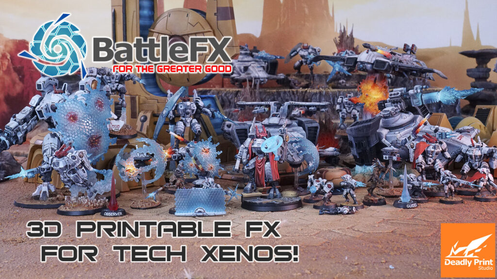 BattleFX: For the greater good is a new project containing more than 70 3D printable files, meticulously designed to bring to life all those futuristic and alien looking weapons you love so much. This includes files for effects such as energy weapons and shields, scenery details, and gaming aides that will bring a kinetic feel to your tabletop games.