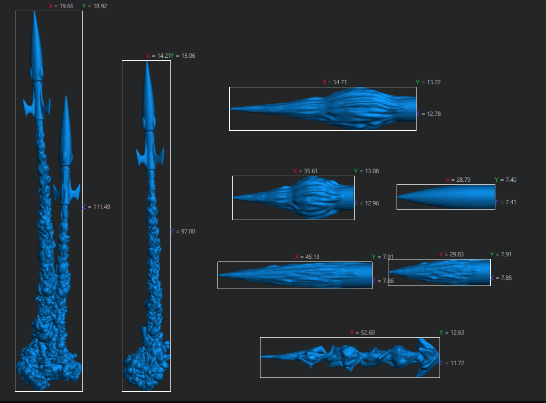 Missile 1, Missile 2, Thruster Complex L, Thruster Complex S, Thruster Simple L, Thruster Simple S, Thruster Smooth, Void Lance blast