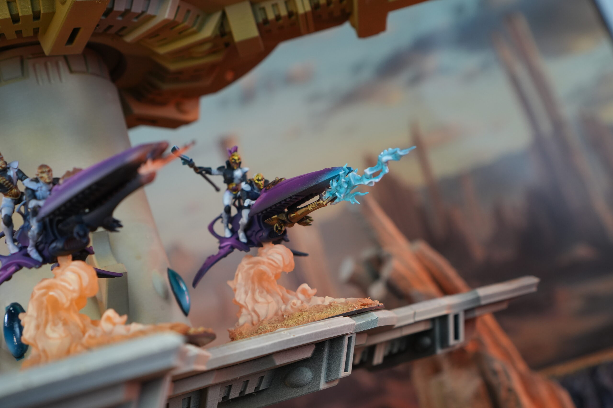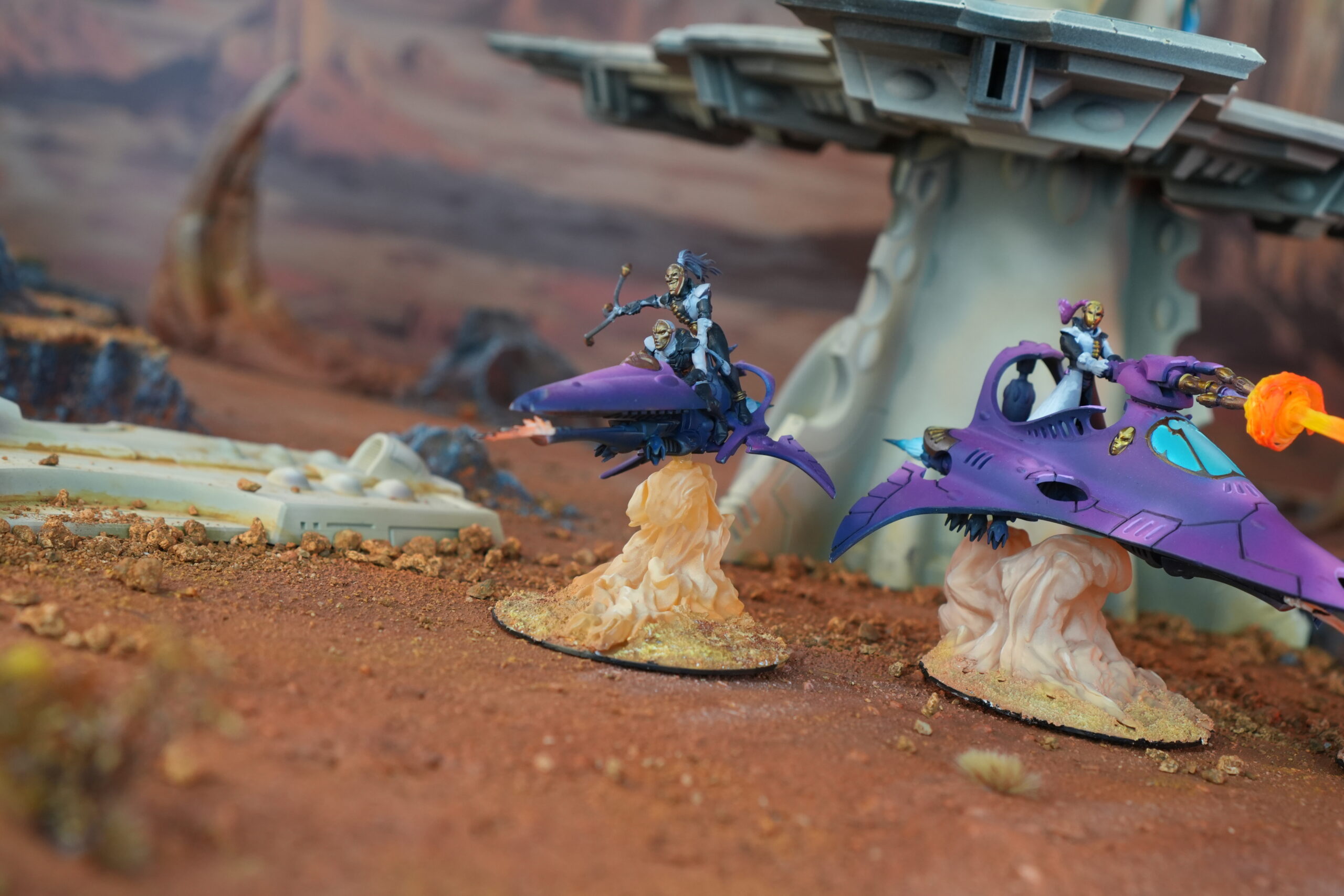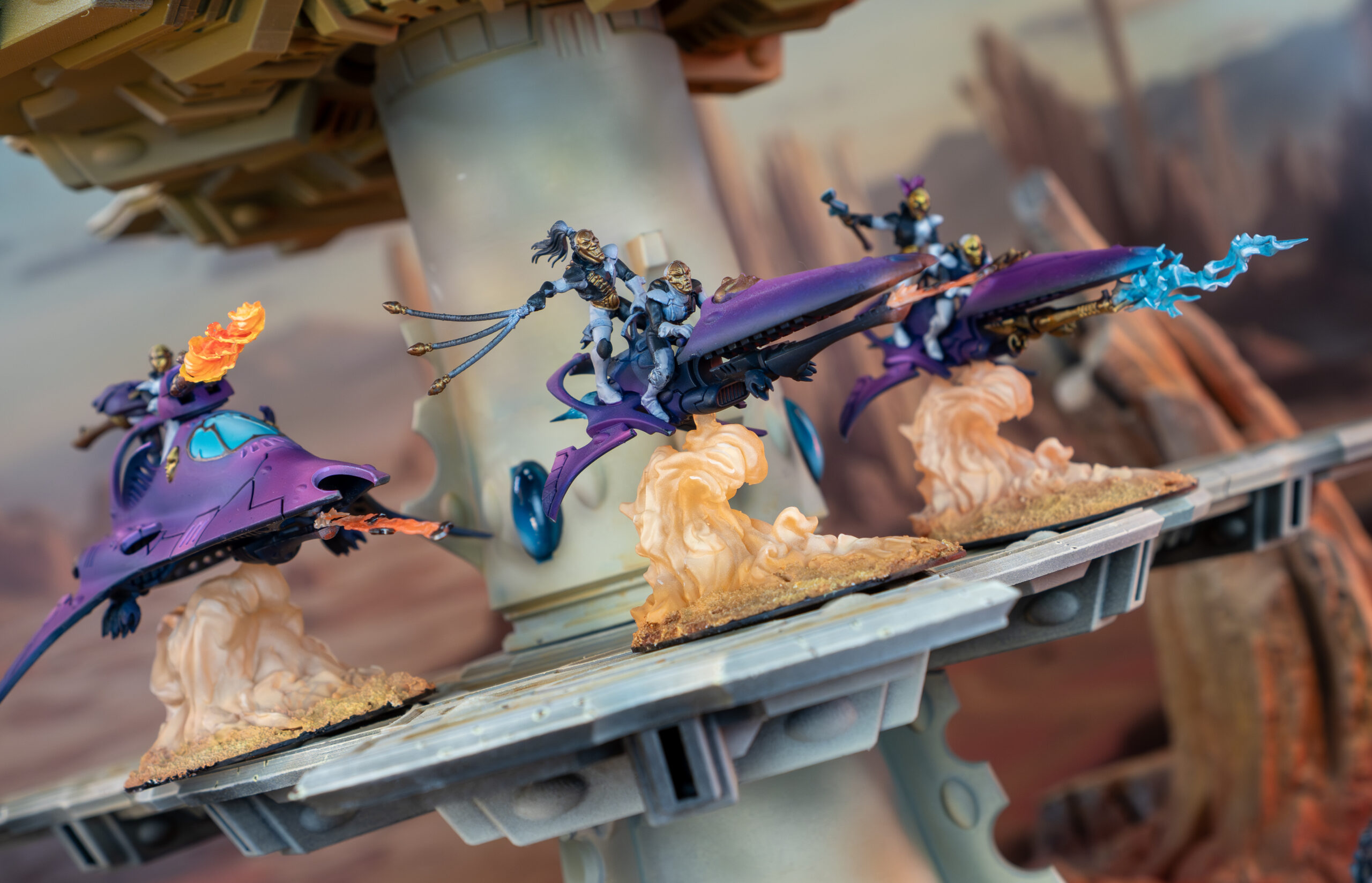 Capture the speed, grace, and lethality of the Harlequin Skyweavers with our custom 3D-printed effects. This set includes a crackling haywire cannon energy ray, a cloud-kicking flying dust base, multiple thruster bursts, and a variety of shuriken weapon muzzle flashes — all designed to showcase the blistering velocity and deadly elegance…