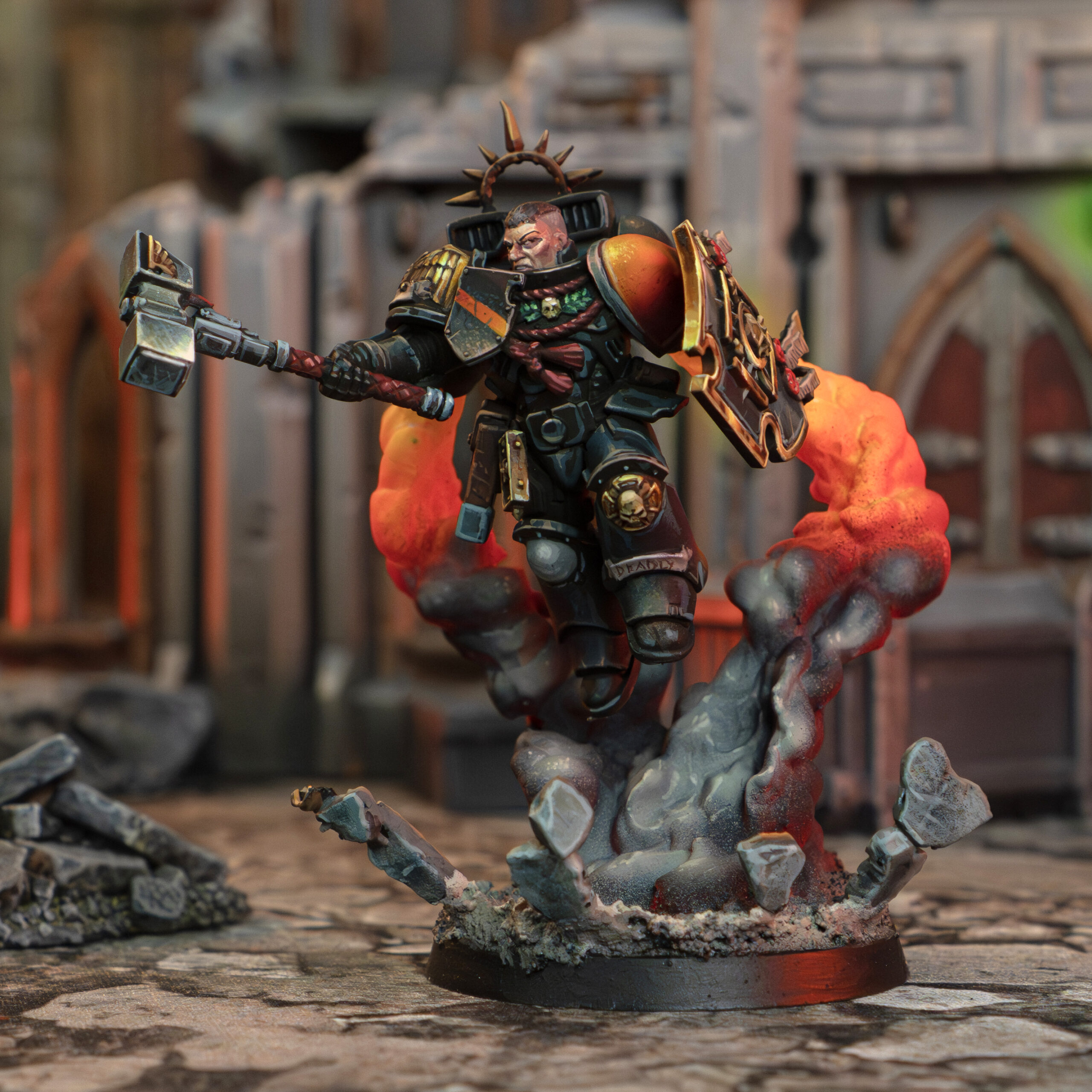 Marines – Assault Intercessors Captain with hammer jetpack smoke base – Physical