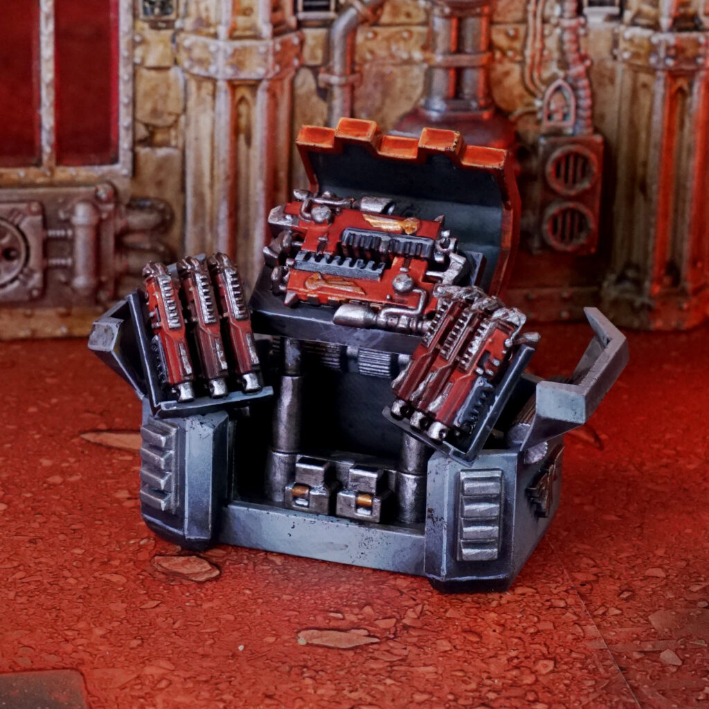 We added our own kind of bolter and heavy bolters to this mecanized box full of weapons. Ready to resupply your troops!