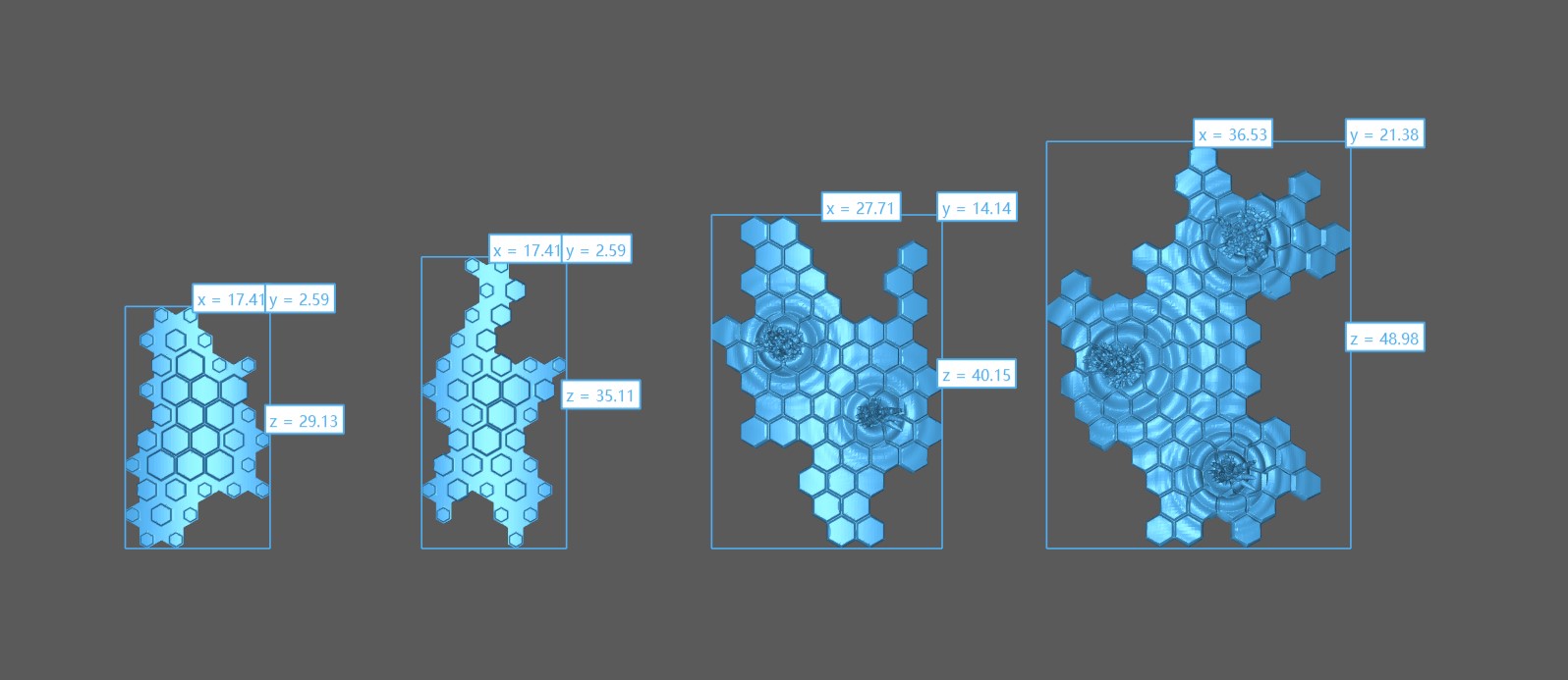 Shield with 2 impacts, Shield with 3 impacts, Growing shield -1, Growing shield -2