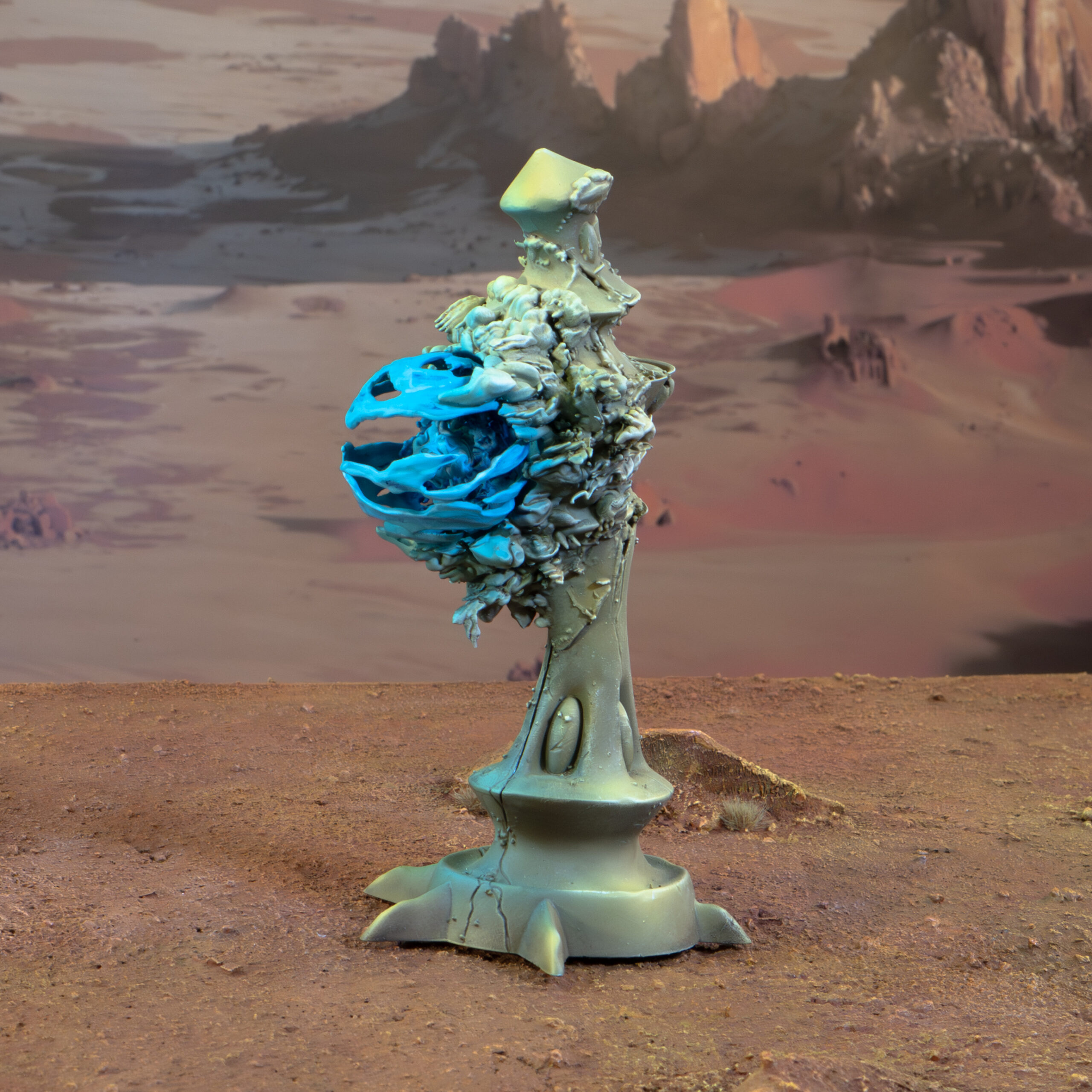 This Aeldari-inspired structure bears the scars of a violent explosion — elegant curves fractured, wraithbone splintered. Designed as a scenic centerpiece or battlefield ruin, it captures the tragic contrast between ancient beauty and the relentless violence of the 41st…