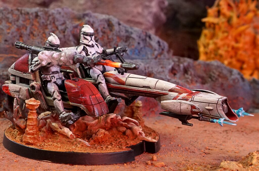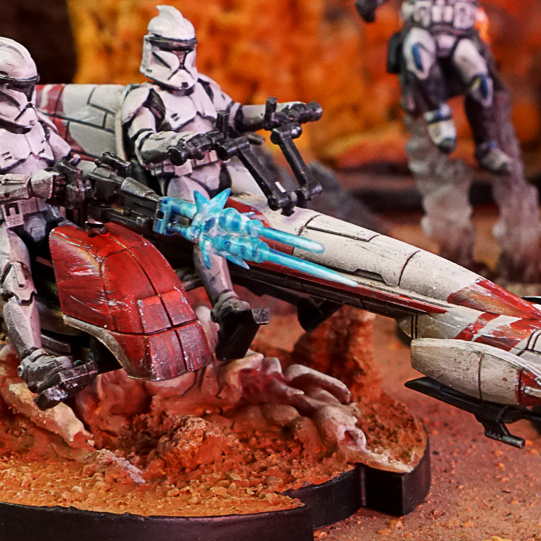 We want to eradicate all those awful clear sticks. This time for the SW Legion Barc flying super fast leaving an smoke cloud behind! Also, a collection of Fx for all it’s weapons.